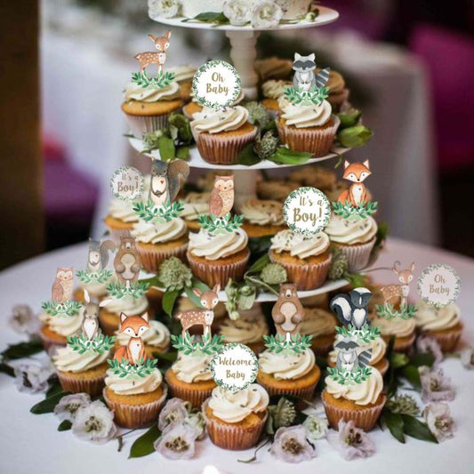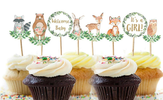 33 Woodland Animals Cupcake Toppers for Girls, Oh Baby Woodland Cupcake Toppers, Welcome Baby Cupcake Toppers, Its a Girl Cupcake Toppers