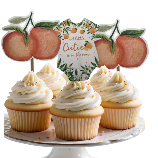 A Little Cutie is on the Way Baby Shower Cupcake Toppers, Little Cutie Baby Shower Toppers, Orange Citrus Baby Shower Decorations