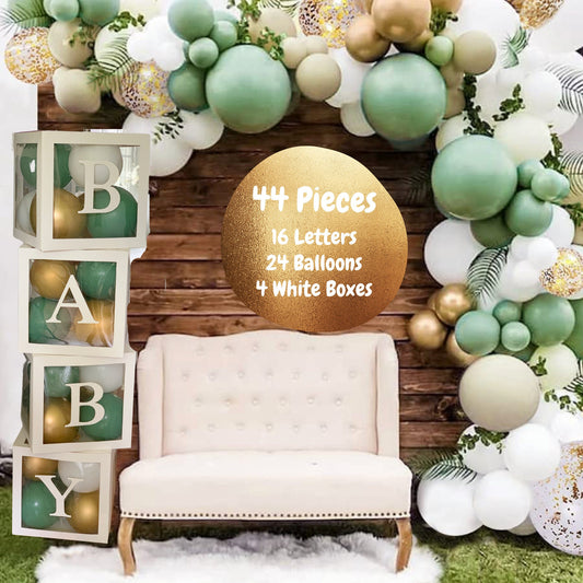 Baby Block Balloon Box with Letters, Baby Shower Decorations, Jumbo Transparent Balloon Boxes, Sage Green, White and Gold